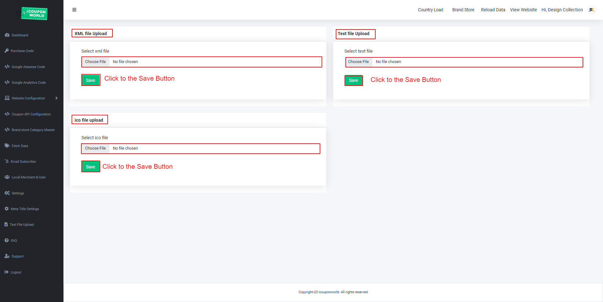 Here You Can Upload Your XML File, Text File, Ico File and CLick to Save Button